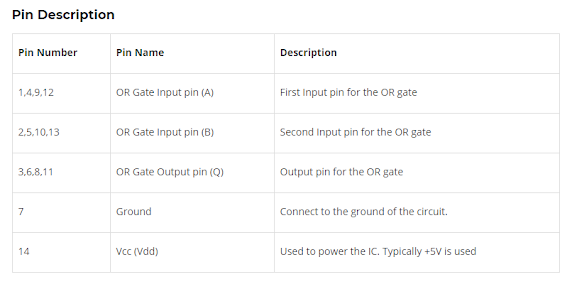 - Pin 1 & 2, 5 & 6, 8 & 9, 12 & 13 adalah input gerbang